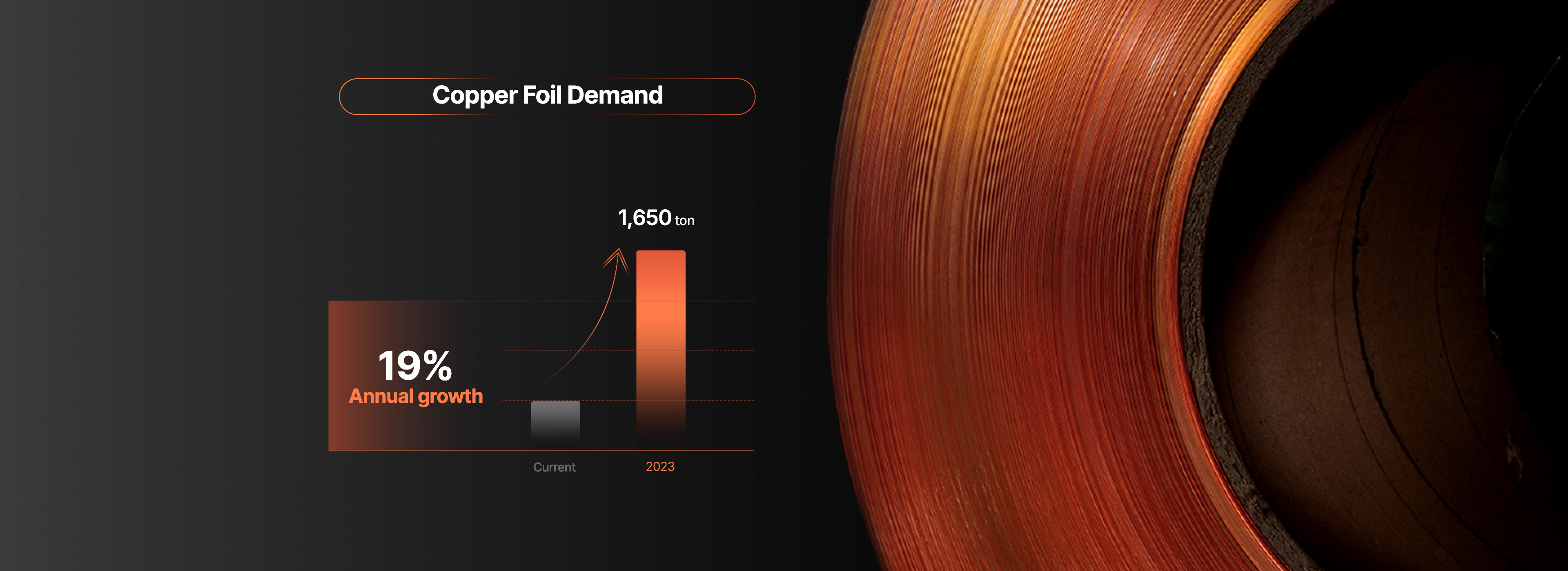 One of the four main materials for electric vehicle batteries is the cathode material. Copper foil is the electrode plate material that supports this cathode. The International Energy Agency (IEA) predicts that the number of electric vehicles worldwide will grow by 30% annually until 2030, reaching a cumulative 145 million units. Accordingly, the demand for copper foil, a core material for electric vehicle batteries, is also expected to increase rapidly. Recently, SNE Research projected that global copper foil demand will reach 1,164,000 tons by 2027.